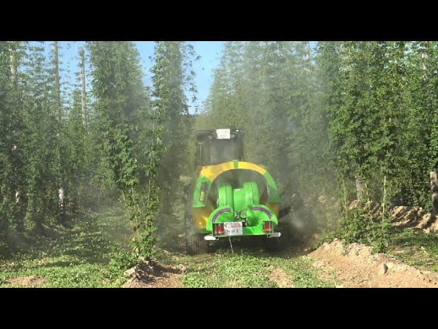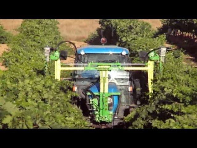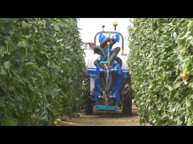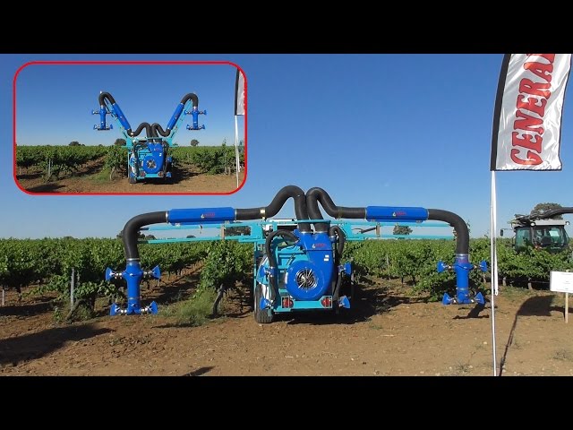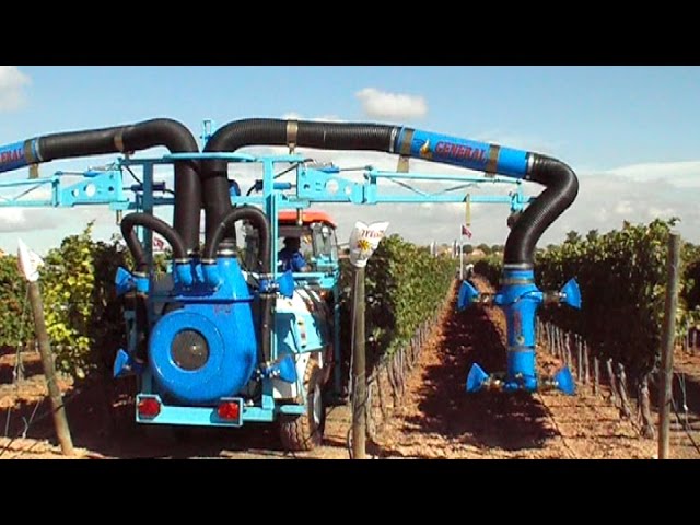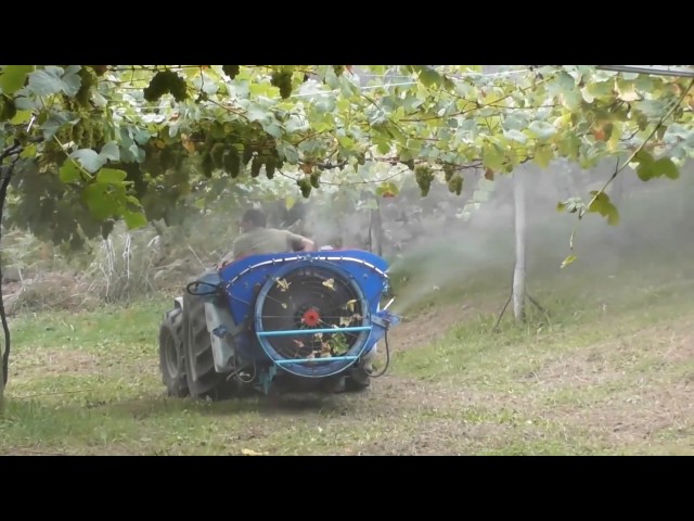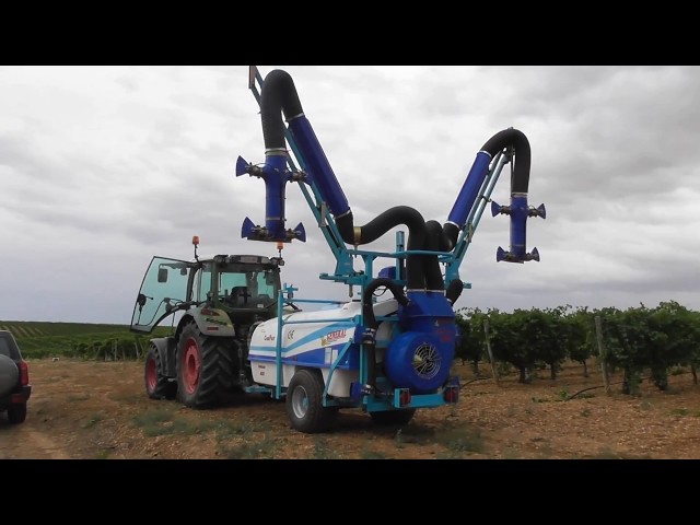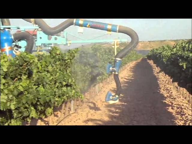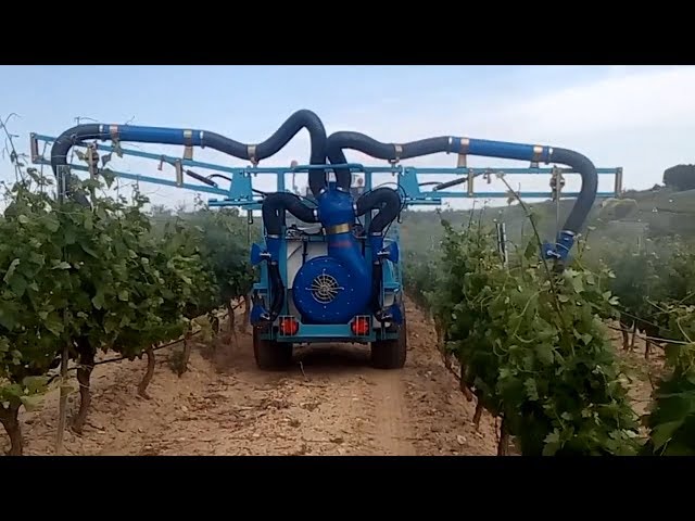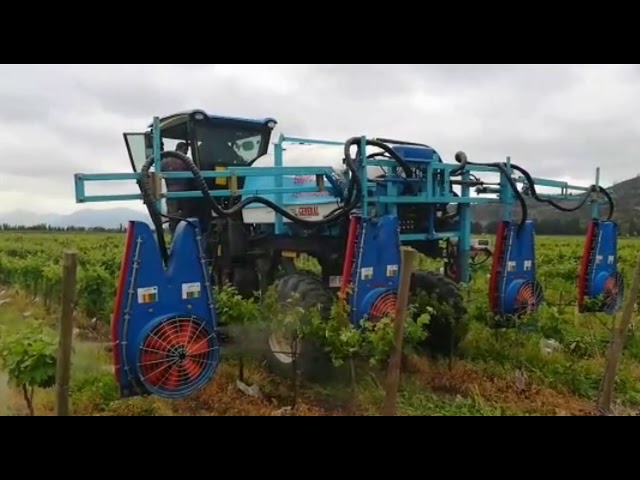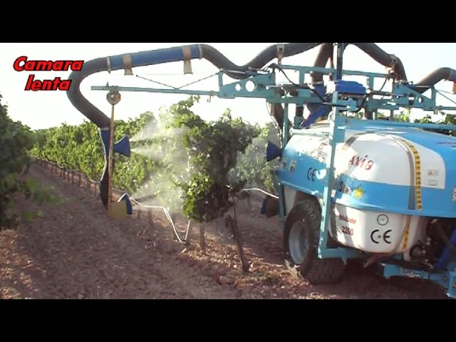 Atomizador especial viña pulverizando 4 filas/ Special vineyard sprayer spraying 4 rows