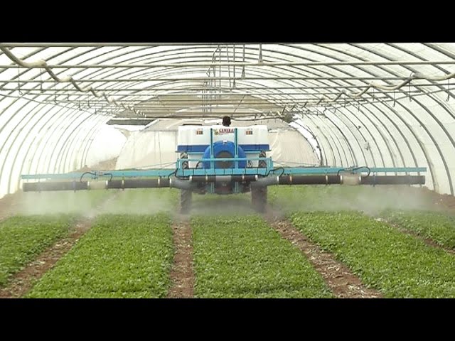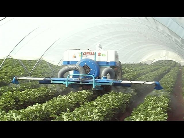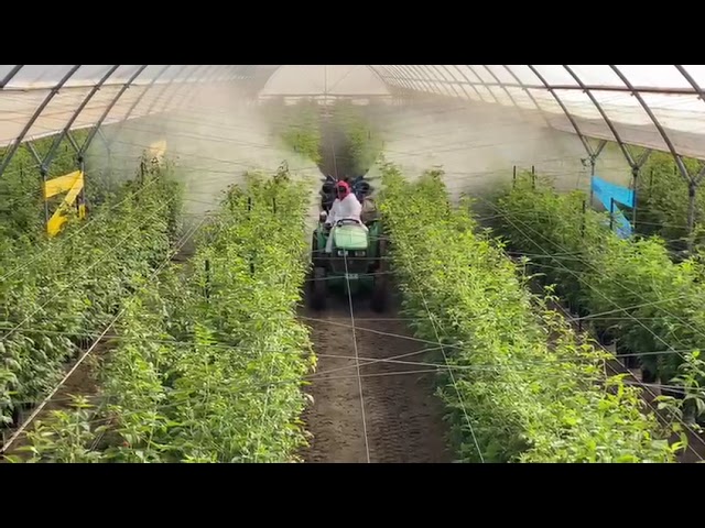 PULVERIZADOR CON ORUGA Y BARRAS HIDRAULICAS EN INVERNADERO