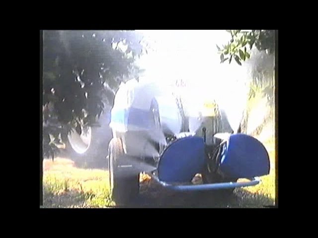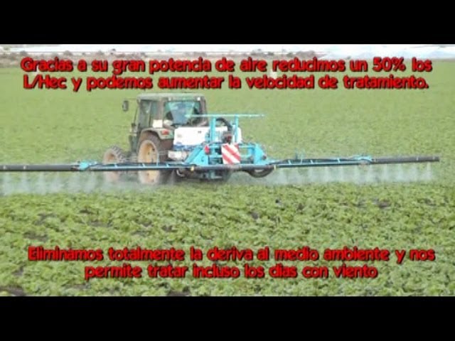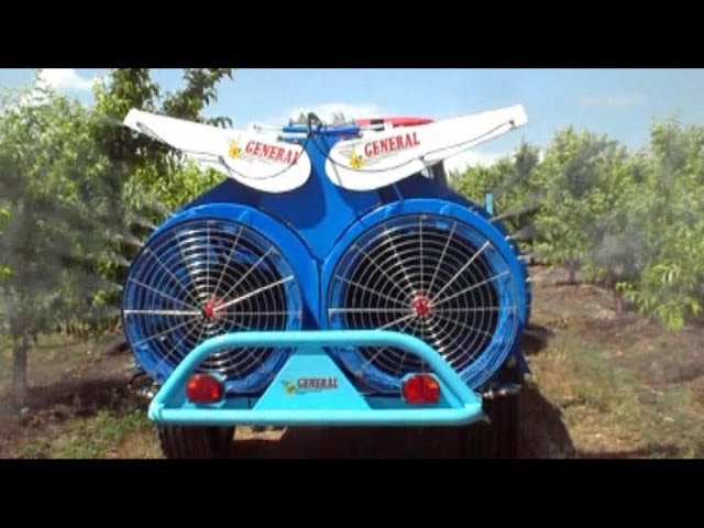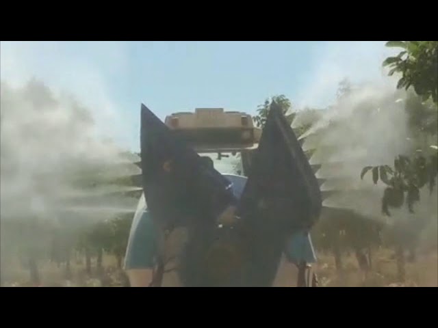 Atomizador tratando 4 filas de frutales/ Agricultural sprayer 2 fans has 4 rows of fruit
