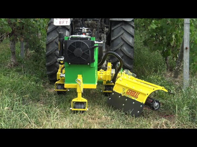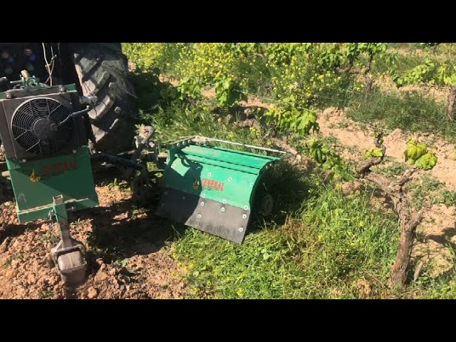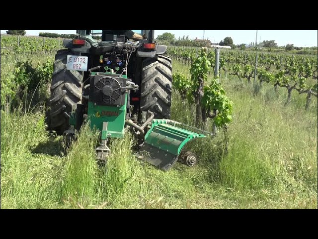 CORTANDO HIERBA INTERFILAS EN VIÑA CON CUBIERTA VEGETAL